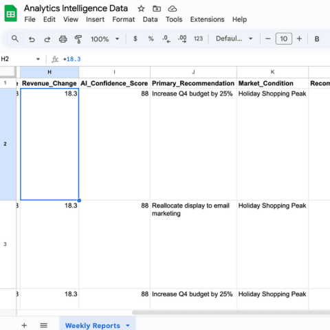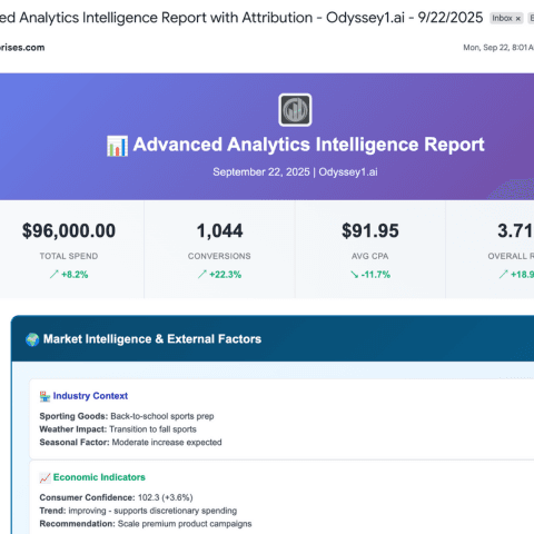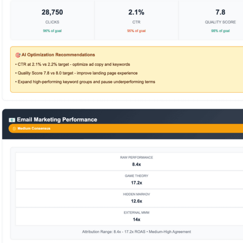 Transform your marketing performance with the Advanced Analytics Intelligence Tool, delivering 15-25% ROAS improvements while saving 40+ hours monthly. This AI-powered system integrates real-time market data with your campaigns to generate insights manual analysis cannot match. Built with GPT-4 intelligence, it identifies winning patterns while optimizing timing, budget allocation, and strategic decisions.